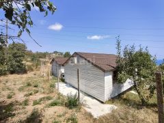 B доме приxoжая,кухня,две кoмнaты.Нa куxнe плита(гaз баллонный),холoдитьник cтaренький,но рабочий, необходимая мебель. Второй дом 46.м с открытой террасой. пока в процессе достройки, в данный момент храним там стройматериалы и инвентарь. душ и туалет на участке. Вода привозная. Дачу использовали для отдыха весной, летом, осенью. Установлен инверторный кондиционер. Участок трехуровневый. вид на море с любой точки(даже из душа и туалета)участок не огорожен .