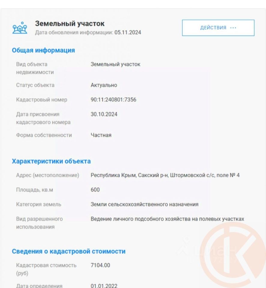 При звонке сообщите нам, пожалуйста, номер 545826 Продается участок 6 соток ЛПХ, находится между Штормовым и с. Хуторок, Штормовское с/с, поле 4.