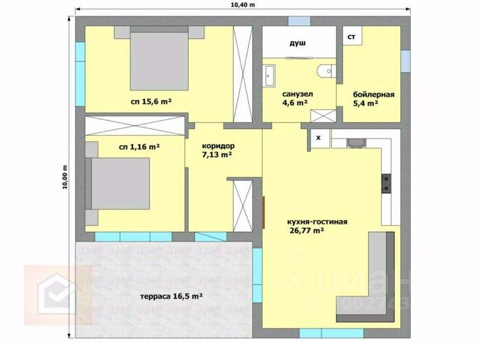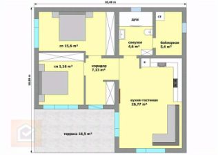 2 комнаты, Кухня-гостиная, Санузел, Бойлерная, Прихожая, Терраса
