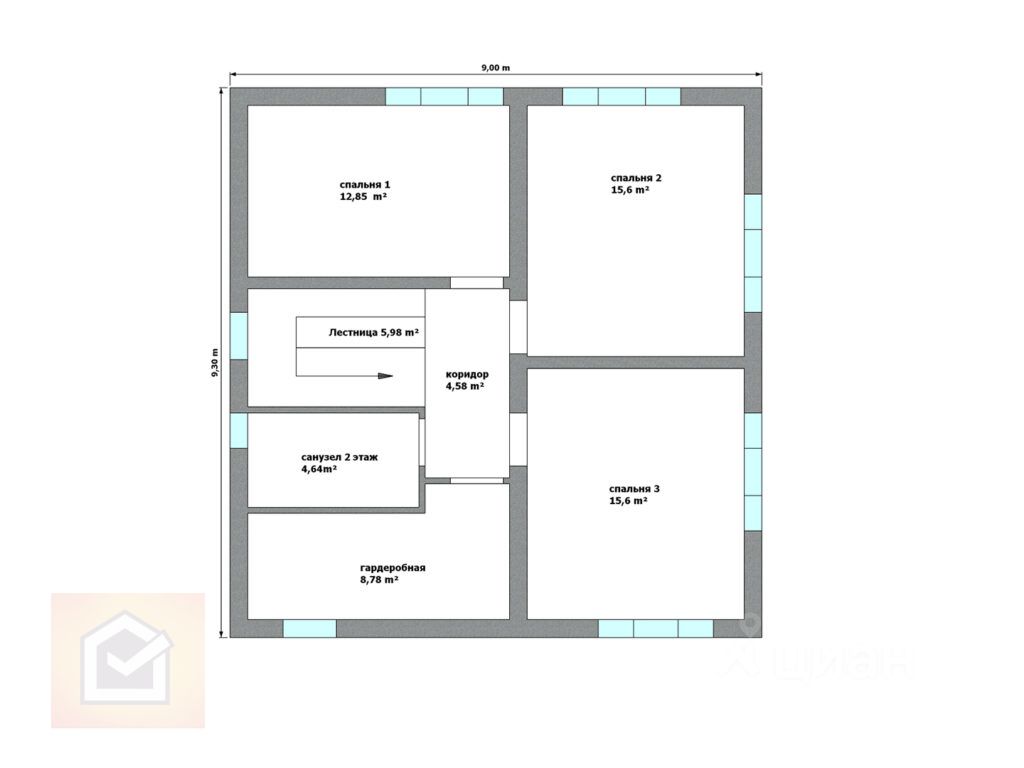 Размеры дома по фундаменту: 9*9,3 м