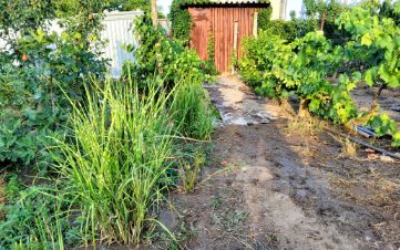 Имеется железная бочка объёмом 4 куба для полива деревьев — удобно для ухода за садом даже в жаркое время года.
