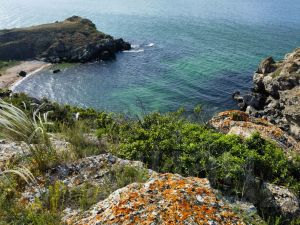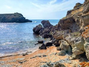В каждую бухту есть несколько спусков, в т.ч. не крутые, вполне комфортные