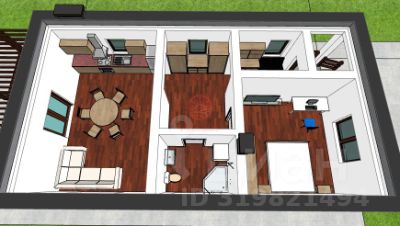 Планировка: кухня-гостиная, спальня, санузел совмещенный, коридор, прихожая.