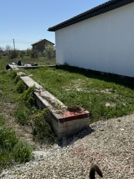 Напротив соседей нет из окон открывается вид на природу , залит фундамент под гараж, 8-ми скатная крыша, за счет расположения участка на повороте дороги есть большая территория перед домом.