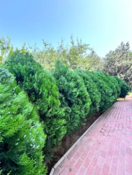 Кроме того, участок радует ухоженным ландшафтным дизайном: здесь растут туи и ели, а также фруктовый сад.