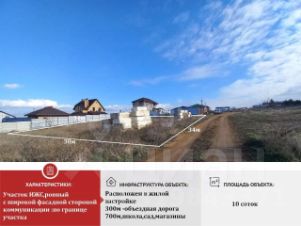 В продаже земельный участок, (ИЖС),10 соток, в с. Мирное, прекрасное расположение- ТЦ Меганом в 5 минутах езды, удобная транспортная развязка - рядом объездная, участок ровный, правильной формы - подходит под строительство индивидуального жилого дома. Электрический столб возле участка, район газифицирован! По близости уже застраиваются соседи. Инфраструктура с. Мирное хорошо развита, есть своя школа, садик, магазины на любые потребности, общественный транспорт ходит регулярно.