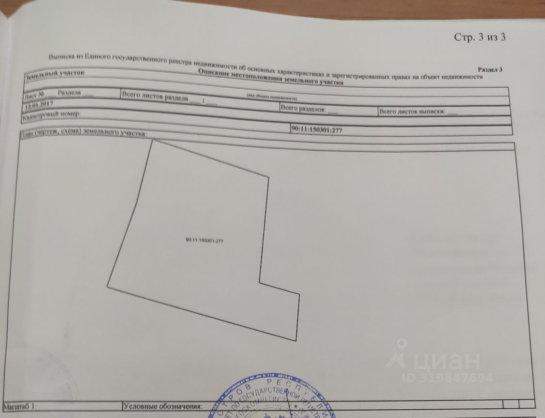 Кадастровый номер участка 90:11:150301:*** указал продавец