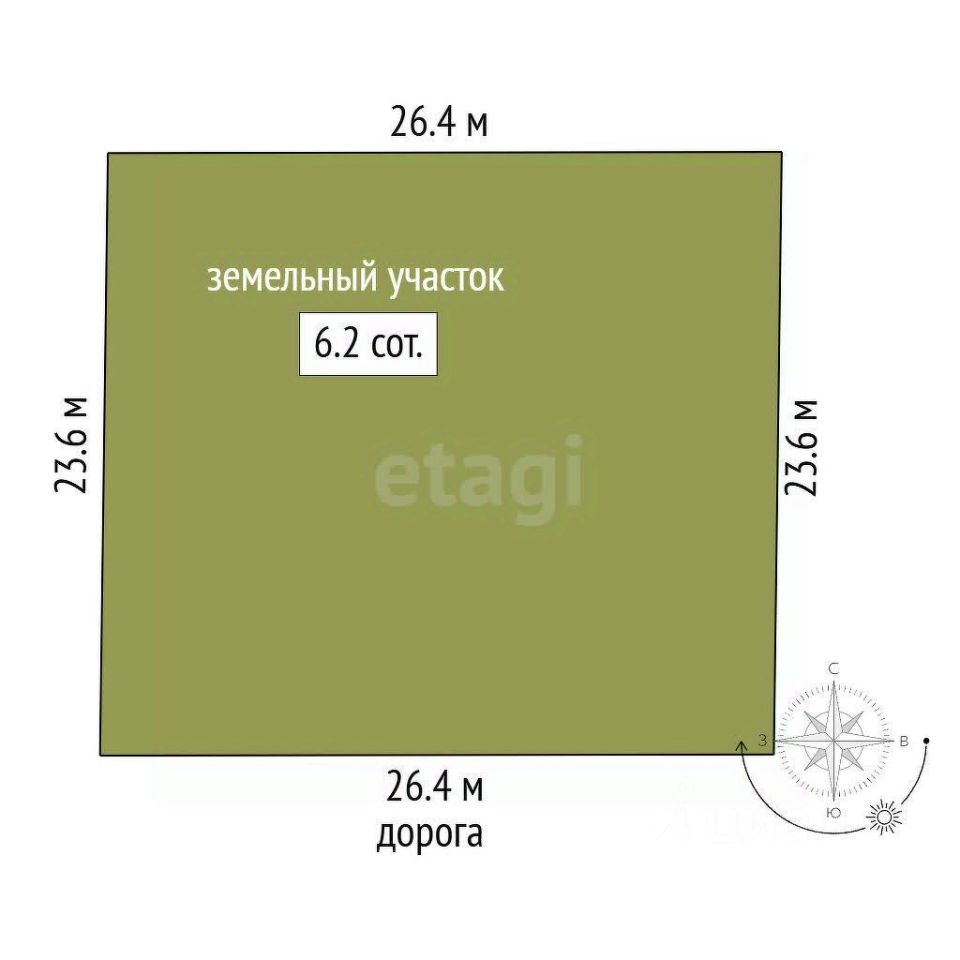 - **Площадь:** 6.2 соток, идеально подходит для дачного строительства или организации личного подсобного хозяйства.