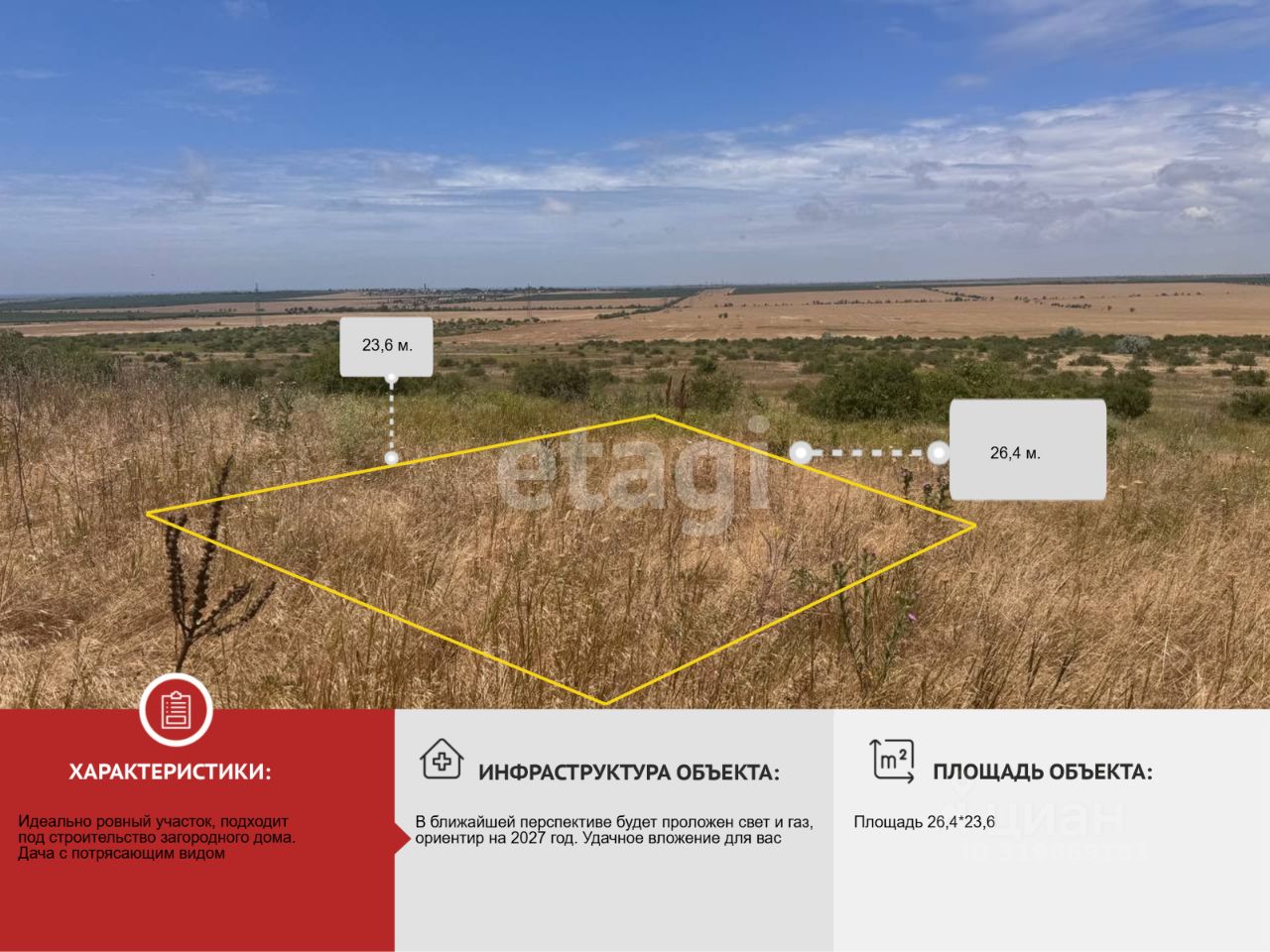 - **Рельеф:** участок ровный, открывающим захватывающий панорамный вид на окружающую местность.