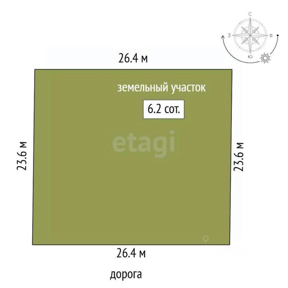 - **Площадь:** 6.2 соток, идеально подходит для дачного строительства или организации личного подсобного хозяйства.