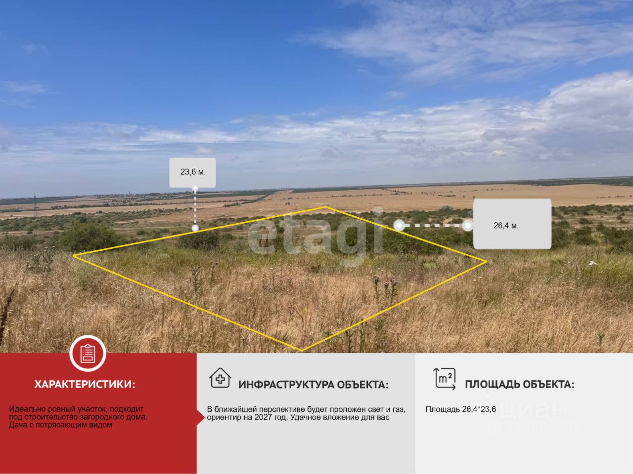- **Рельеф:** участок ровный, открывающим захватывающий панорамный вид на окружающую местность.