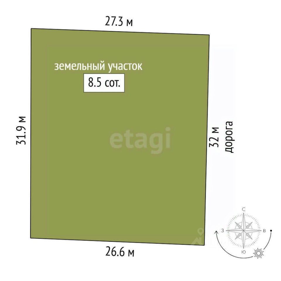 Земельный участок площадью 8 соток расположен в Урожайном сельском поселении, в 10 км от Симферополя и 7 км от трассы "Таврида". Удобное расположение обеспечивает быстрый доступ к городской инфраструктуре и основным транспортным магистралям, при этом сохраняя преимущества загородной жизни. Участок имеет правильную прямоугольную форму и ровный рельеф, что упрощает планировку и строительство.
