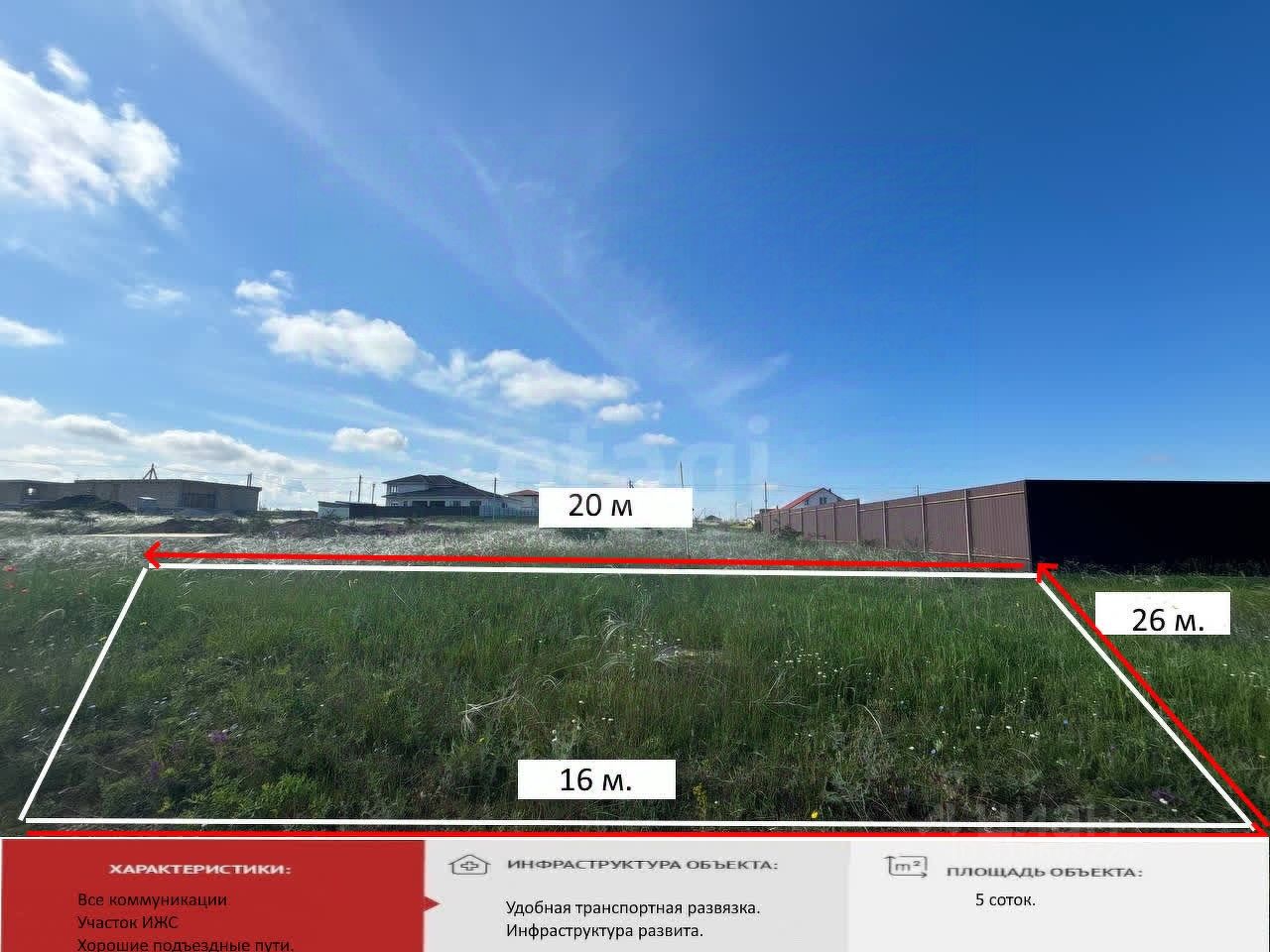 Идеально ровный участок с площадью 5 соток, расположенный всего в 10 минутах от центра города. Отличные подъездные пути по широкой дороге и удобная транспортная развязка в любом направлении!
