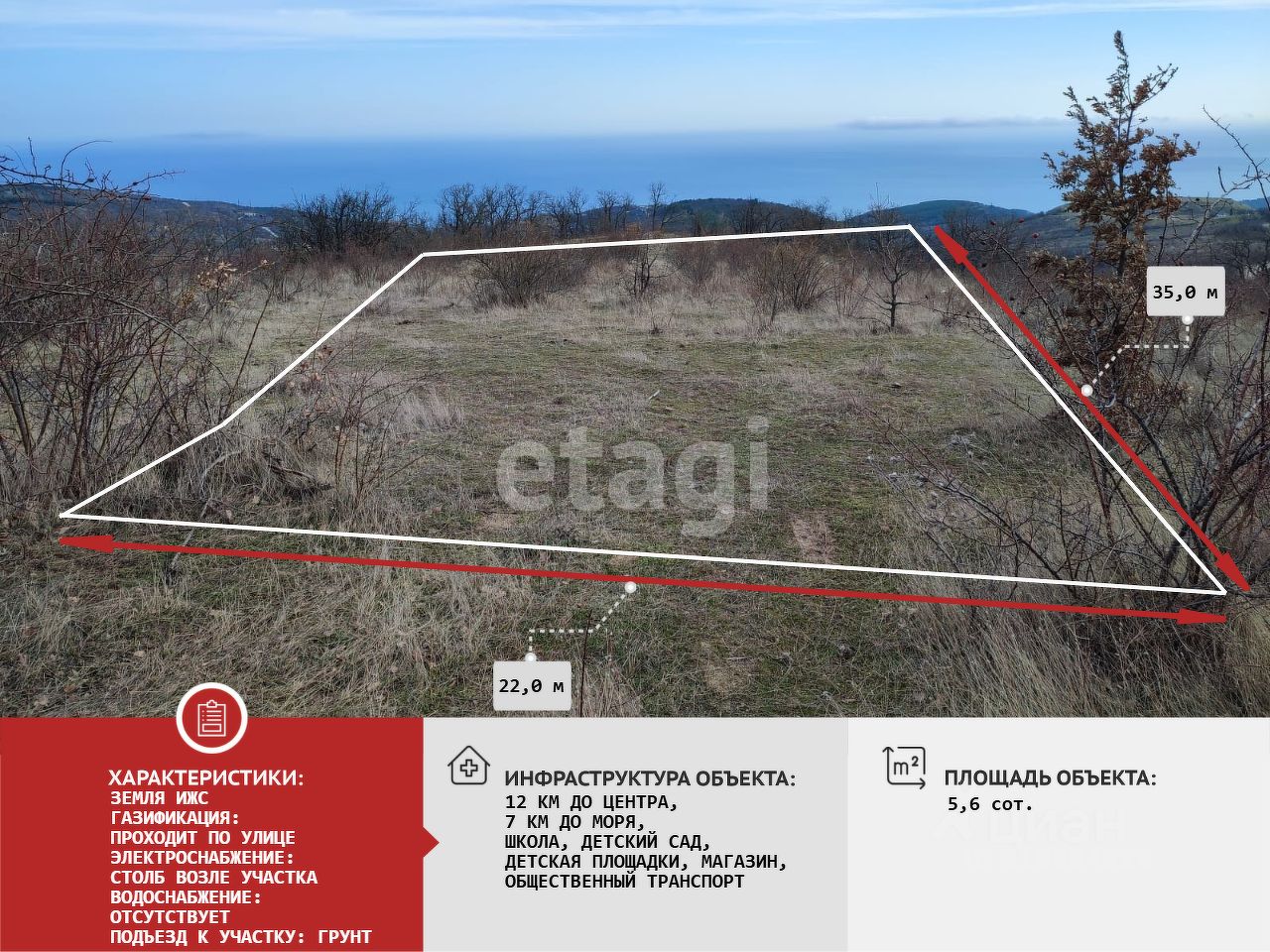 На данный момент там только ведется облагораживание. Электричество проведено в 150 метрах. Для воды нужно бурить скважину. Газ в перспективе. Незначительный склон. Категория земель: Земли населённых пунктов.