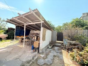 Стены камень-ракушечник, плиты перекрытия бетонные блоки, окна - стеклопакеты, крыша металлочерепица. Первый этаж кухня, комната, ванная и санузел + баня, лестница. Второй этаж коридор, 2 комнаты с выходом на террасу. Цоколь подвал под всем домом, гараж.