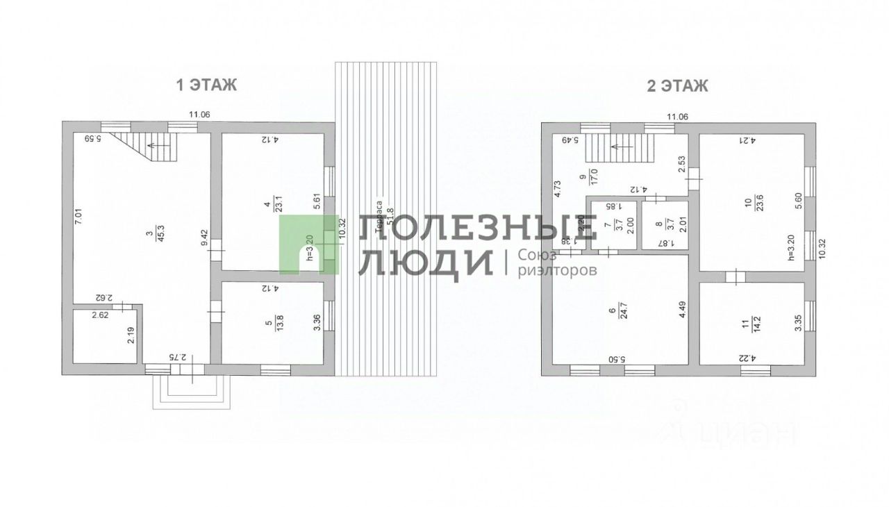 Планировка включает в себя: 5 комнат, 3 санузла, просторную кухню-гостиную с выходом на террасу