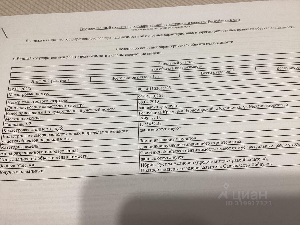 Кадастровый номер участка 90:14:110201:*** указал продавец