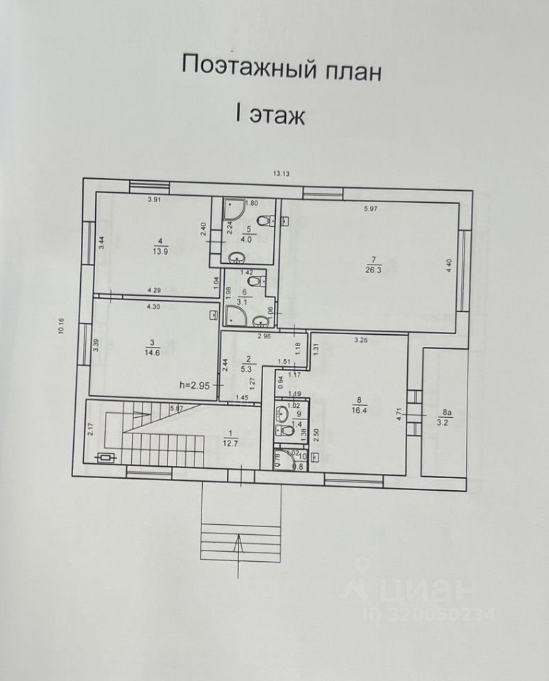 На участке расположен жилой дом, двухэтажный, 2018г постройки, площадью 292,2 м2, жилая 142,4 м2 (1-эт. 14,6/13,9/26,3/16,4м2, 2-эт. 14,7/13,7/26,4/16,4м2), 8 комнат, шесть с/у и две душевые.