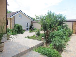 Ландшафтный дизайн двора ,выложен тротуарной плиткой, летняя веранда для отдыха, ухоженная придомовая территория. 10-15 минутах ходьбы от моря.