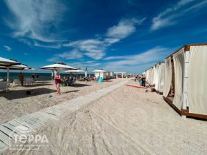 Участок находится в самом центре посёлка и в триста метров от моря все подъезды заасфальтированы на данный момент ведётся расширение основной подъездной дороги к посёлку которая проходит непосредственно возле участка остановки автобуса у ворот объекта.