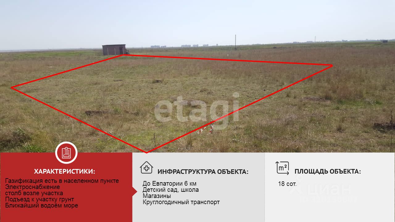 Всё необходимое в шаговой доступности: магазины, аптека, автобусная остановка, школа, детский сад. Хорошая транспортная развязка. Остановки общественного транспорта. До центра Евпатории 5 км, на машине 10 минут, на автобусе 20 минут. В 5 км от моря. Возле села ведётся строительство автомобильной магистрали федерального значения "Керкинитида" Симферополь - Мирный.
