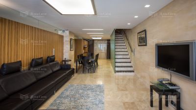 Выполнена полная внешняя и внутренняя отделка с использованием натуральных материалов. Установлены бронированные энергосберегающие стеклопакеты, система вентиляции и кондиционирования "Daikin", сантехника "Villeroy&Boch". Мебель от ведущих итальянских производителей, кухня "Poggen Pohl", техника "Gaggenau".
