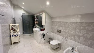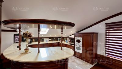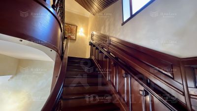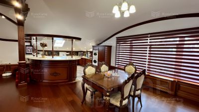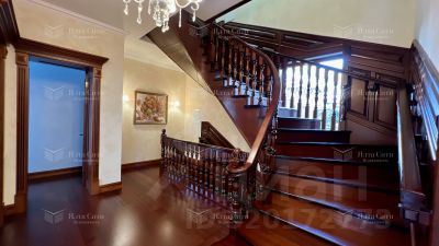 На второй и третий этажи ведет роскошная лестница из ясеня, которая стала настоящим украшением интерьера. Второй этаж - жилое пространство из 4 комнат, одна из спален с гардеробной и собственной ванной комнатой, еще одна ванная комната на этаже. На этаже четыре выхода на террасы, на одной из них сделан вывод под джакузи. Все выполнено в английском стиле.