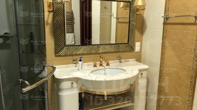 1-й этаж выполнен в итальянском стиле, разделен на три зоны: холл, просторная кухня-гостиная с камином из белого мрамора. На полу уложен керамогранит Versace - сочетание непревзойденного качества и великолепного стиля. Помещения, оформленные кафелем данного бренда, своей роскошью напоминают дворцовые интерьеры. Входная дверь из массива натурального дерева с инкрустацией и хрустальными вставками. Так же на этаже находится жилая комната, помещение сауны, ванная комната.