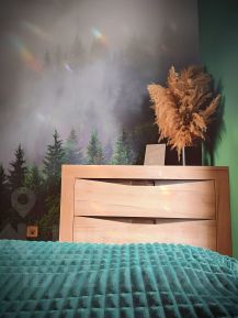 Дом на утеплённом ленточном фундаменте, с водяным теплым полом на электрическом котле. Напольное покрытие - ламинат. Задняя стена и межкомнатные стены - из газобетона. Крыша - металлопрофиль черного цвета, утеплённые стены (базальтовая вата 200 мм) с парогидроизоляцией и мембраной (фотоотчёт доступен). Внутреннее покрытие - вагонка (класс А) цвета "палисандр". Окна - семикамерный профиль с УФ-защитой и теплоизоляцией. Приточно-вытяжная вентиляция во всех помещениях.