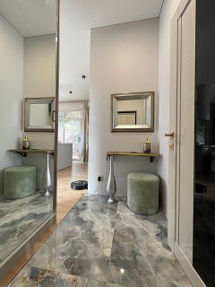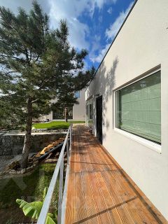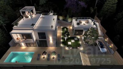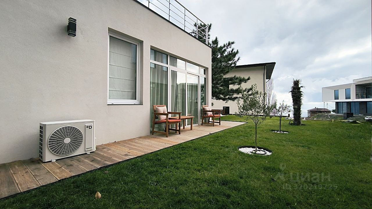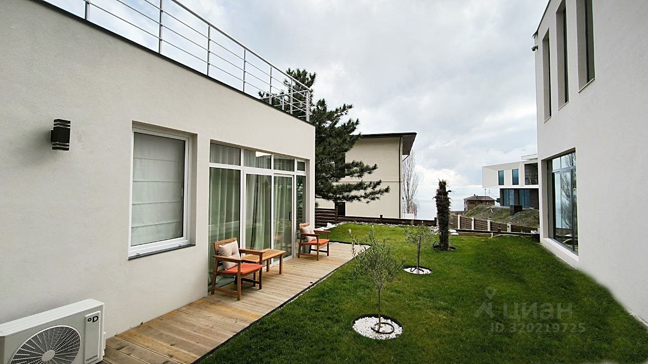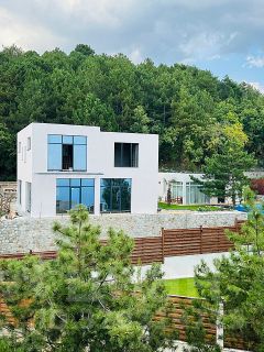 2 этаж: 2 мастер-спальни с санузлом и гардеробом, спальня (детская или кабинет). В домах выполнено панорамное остекление для максимального освещения, стекла энергосберегающие с ультрафиолетовой защитой . С участка и дома открывается вид на море и горы. На крышах гостевого и основного домов предусмотрены террасы. Газ подведён к участку. Заведено электричество. Для водоснабжение пробурена скважина. Водоотведение автономная многоступенчатая система очистки.