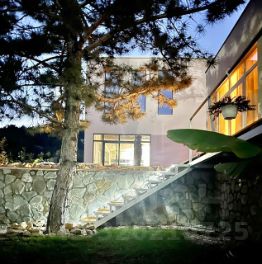 Предлагаем к продаже два дома в Большой Ялте. Дома расположены на участке 7 соток рядом с Ялтинским горно-лесным заповедником. Основной дом и гостевой площадью 222 м2 и 45 м2 соответственно находятся в разных степенях готовности. Гостевой дом полностью укомплектован мебелью и бытовой техникой, готовый к проживанию. Основной дом построен, ведутся внутренние отделочное работы. Предлагается в предчистовой отделке. Планировка дома: 1 этаж - 2 зоны гостиной ,кухня ,холл, санузел;