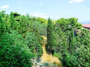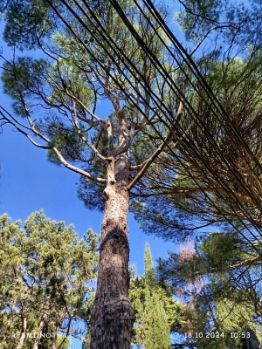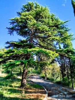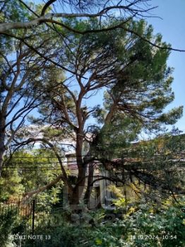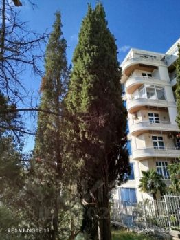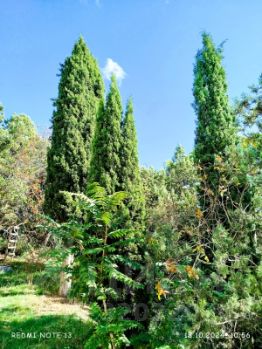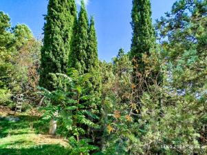На участке 17 деревьев: кипарисы, можжевельники, сосна Пиния, туполистная фисташка.