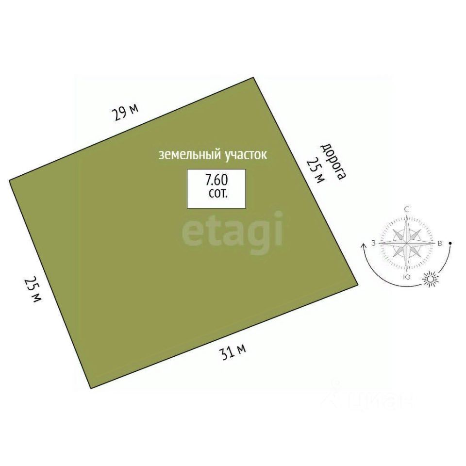 Участок правильной прямоугольной формы: длина 29 м., ширина 25 м. Участок ровный. Подъезд от асфальта 20 метров по грунтовке. С задней части участка открывается шикарный вид на местном вокруг: долины и холмы, который никогда не будет ничем перекрыт.