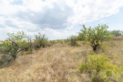 Участок в форме скошенного прямоугольника, имеется плавный уклон. Земля плодородная, так же вокруг участка достаточно много свободной земли, подъезд к участку грунтовая дорога с возможностью организовать два въезда. На территории много насаждений в виде миндаля, который омолодив можно преобразовать в сад (приносящий доход). Также виноградник проходит по границе участка и немного заходит на его территорию в верхней части. Можно на свое усмотрение расположить теплицы или организовать пасеку.