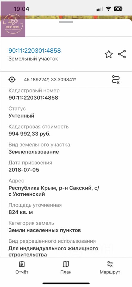 Кадастровый номер участка 90:11:220301:*** указал продавец
