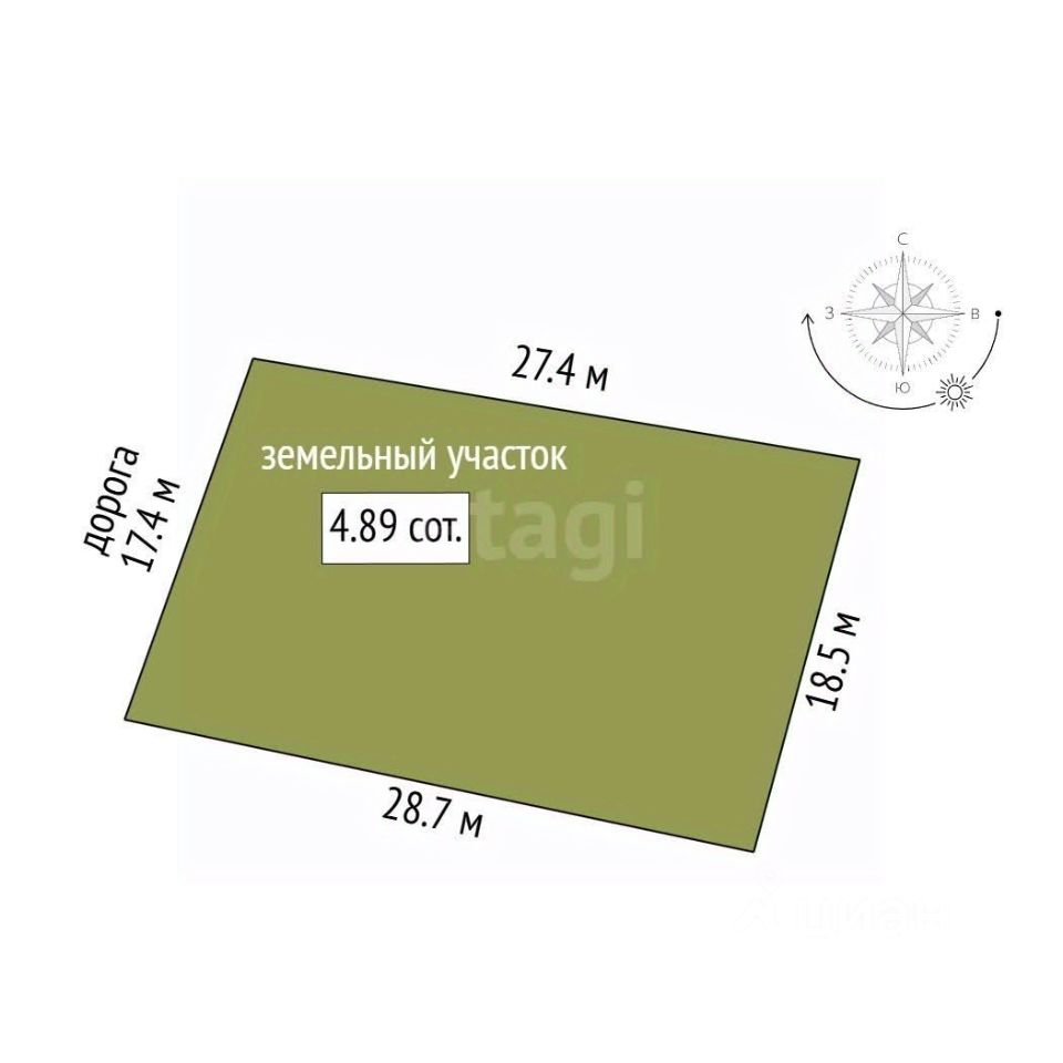 • Размеры: Фасадная часть 17,4 м., общая площадь 4,89 сот. достаточно места для дома и сада.