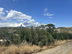 Дорога по верхней границе участка, сухой, с небольшим уклоном в сторону моря, правильной формы, с видами на виноградники и горы.