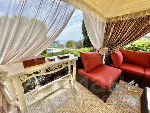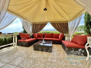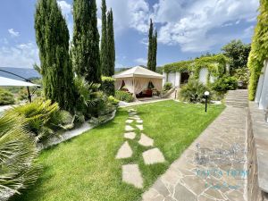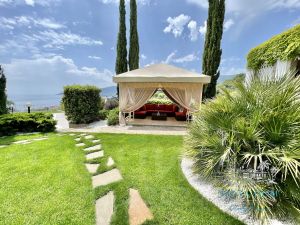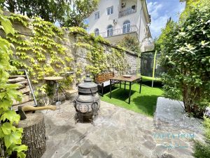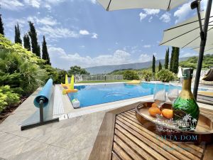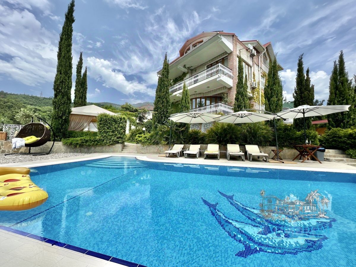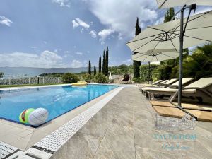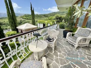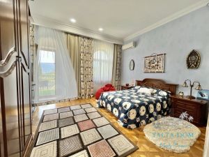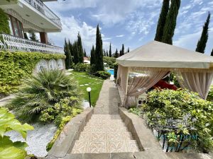 Ландшафтный дизайн придомовой территории, просторный бассейн с подогревом, (температура воды 26-27 градусов) и зоной отдыха, оборудованной удобными лежаками и мягкими качелями; в отдельном строении - сауна. Также, на территории дома: беседка, зона барбекю, летняя кухня с обеденной зоной, детская площадка для игр. Со всей территории и из окон дома открываются потрясающие виды на море, горы, виноградники и город. На придомовой территории - три парковочных места на открытой стоянке и гараж на одну машину.