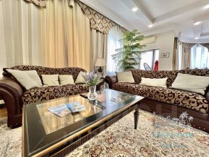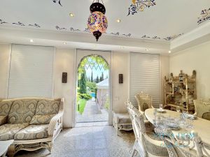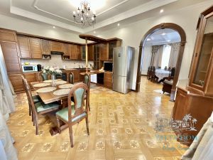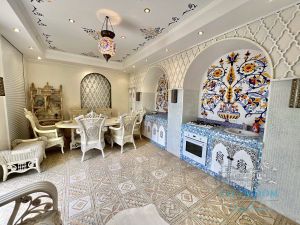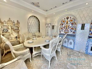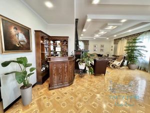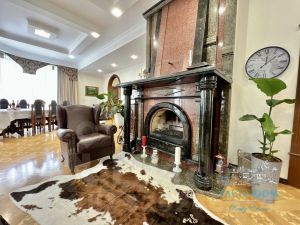В доме: детская игровая комната, отдельное помещение для персонала, со своим входом и кухней, четыре спальни с санузлами и видовыми террасами, кабинет, просторная гостиная с камином, бар, столовая, спортзал, кухня, с необходимой техникой: газовая плита, электрическая духовка, вытяжка, посудомоечная машина, капсульная кофе-машина, два холодильника, есть стиральная и сушильная машины, 4 телевизора, спутниковое ТВ.