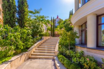 - Эксклюзивный ландшафт: Сады с вековыми кедрами, японскими кленами, оливковыми рощами и средиземноморскими травами. Ухоженные аллеи ведут к секретным беседкам и солнечным полянам.
