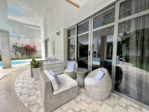 - Бассейн с системой "Аксиоматик и лаунж-зоной под пальмами.