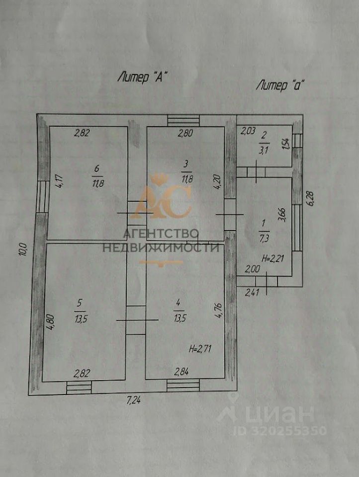 Общая площадь дома составляет 60 кв.м.