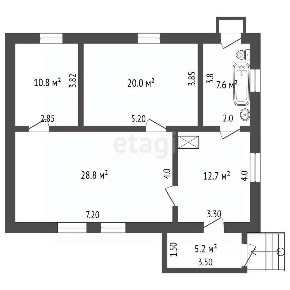 Площадь дома 85.1 кв.м., зем. участка 5 соток.