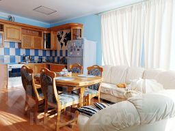 двухкомнтаная квартира 85 кв.м. (кухня 15 кв.м, санузел, две комнаты 22 и 23 кв.м, санезел, отдельный выход на свою придомовую территорию.