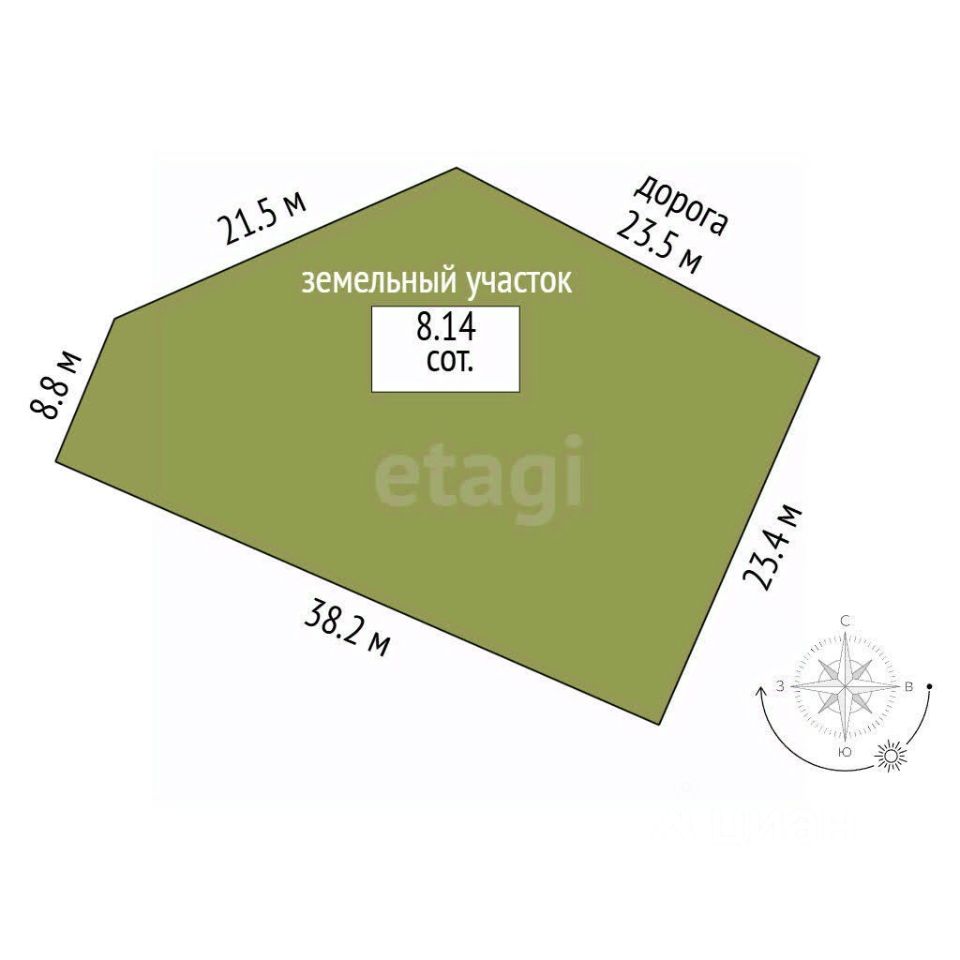 Земельный участок - 8,14 соток.