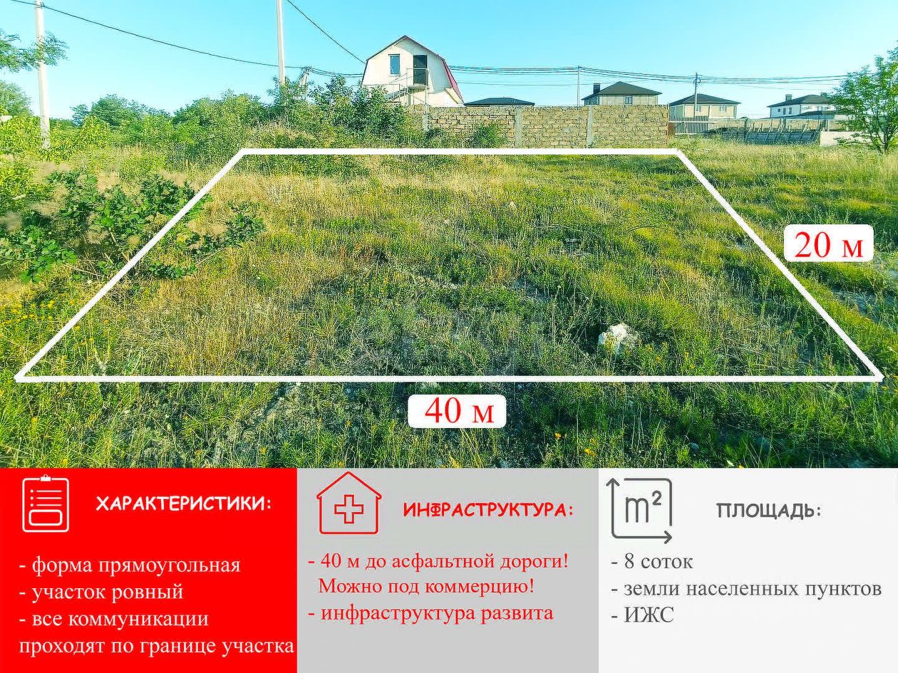 Это идеальное место для проживания и строительства вашего дома мечты на площади в 8 соток. Участок ИЖС, ровный, правильной формы, плодородный грунт.