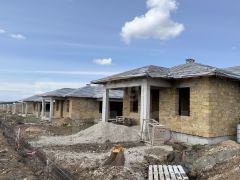 Дом построен из высококачественного крымского ракушечника, что обеспечивает отличную тепло- и звукоизоляцию. Фундамент выполнен с ленточным основанием и монолитной плитой глубиной 0,8-1 метр, что гарантирует надежность и долговечность. Кровля из металлочерепицы придаёт дому стильный вид и защиту от непогоды. Двухкамерные окна обеспечивают отличную теплоизоляцию и светопроницаемость. Коммуникации на высшем уровне: центральное водоснабжение, электричество 15 кВт (собственная подстанция), автономная канализация (септик в каждом доме), газ — в перспективе. Все коммуникации аккуратно уложены под землей, что создает эстетичный вид и удобство эксплуатации.