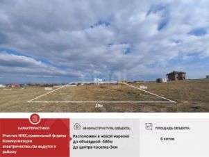 Участок 6 сот, правильной формы, уточнен в своих границах. Электричество в 50м, газ ведется к району.