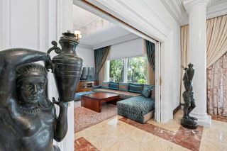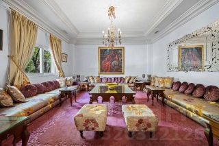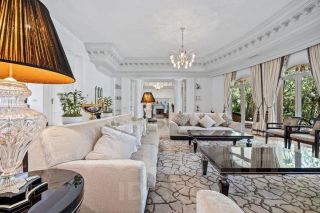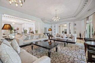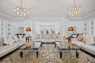 Первый этаж — взаимосвязанные гостиные с декоративными потолками и панорамным выходом в сад.