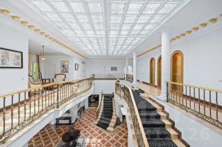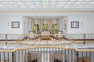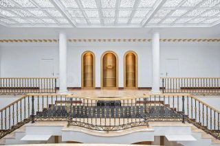 Центральный вестибюль украшен двойной лестницей и мрамором в шахматном порядке.